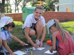 Итак, всё идёт по плану. Значит, автобуса ещё нет. Вспомнить цель нашего EVS, в этот момент, было бы очень кстати. Главная задача волонтёров – играть с детьми на разных, детских площадках и нести радость и улыбку. Донецкий Молодёжный Дебатный Центр позволяет реализовать собственные идеи волонтёров. Каждый работает как подсказывает чутьё. Благодаря этому, у каждой группы, а даже каждого волонтёра есть свой неповторимый стиль. Именно поэтому донецкий проект так разнообразен.