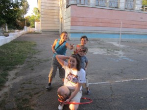 Когда в конце концов мы нашли это сокровище, мы быстро познакомились с тремя мальчиками – Владом, Димой и Андреем, которые стали нашими гидами по этом посёлке. Они показали нам важнейшие места своего “королества”. Потом мы все вместе начали играть и так прошёл наш первый день работы.